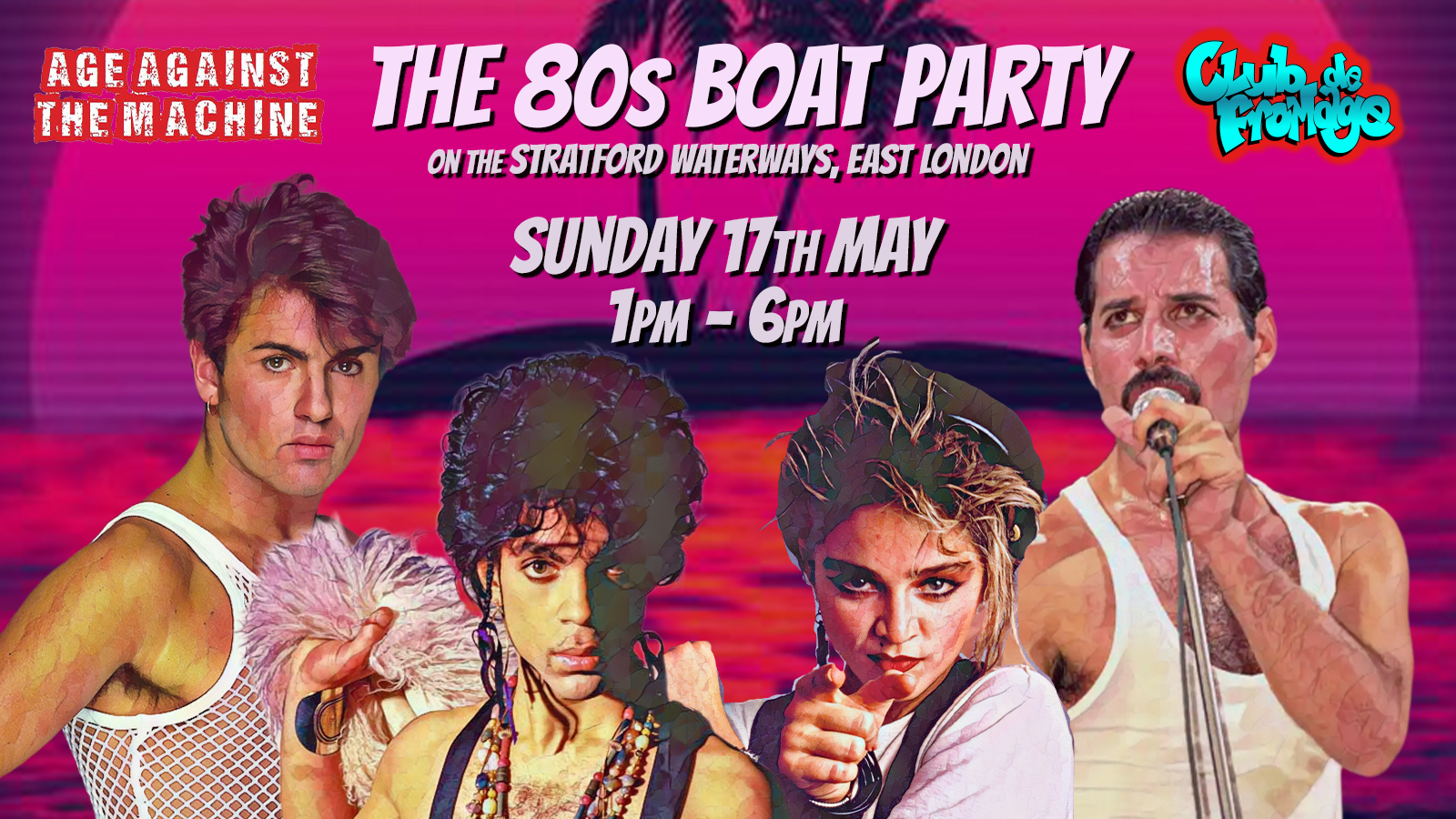 Join our Against The Machine & Club de Fromage skipper as we glide up and down the East London Waterways shaking your bits to all those retro 80s hits.