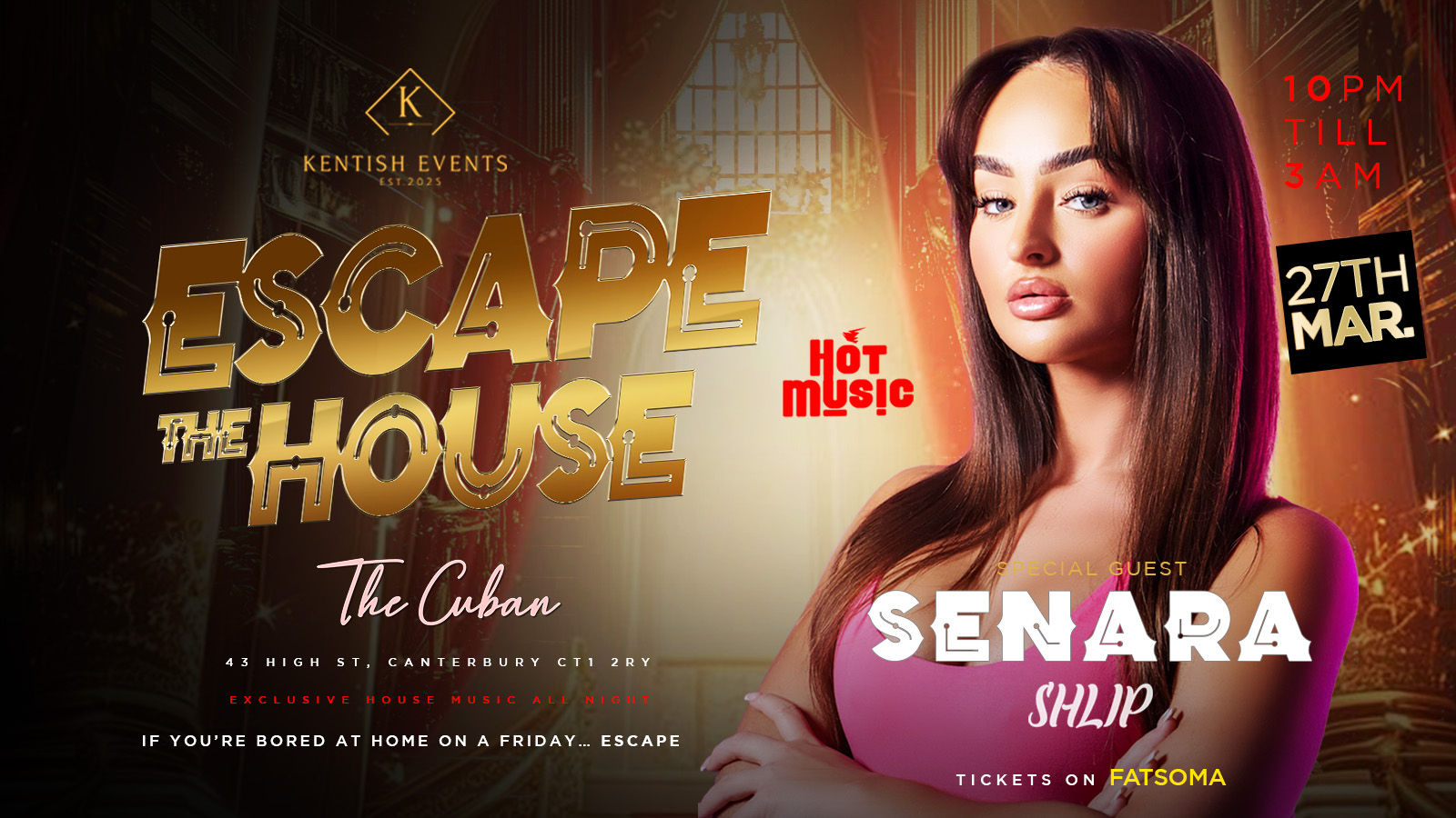 Kentish Events presents Escape The House, a brand new high-energy house music experience in the heart of Canterbury. Expect an electric atmosphere, packed dancefloor, and nothing but non-stop house music all night long.