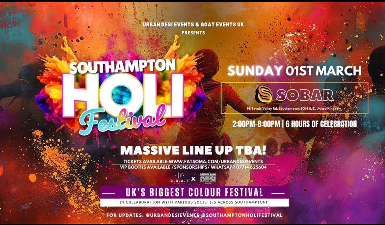 Organised by Urban Desi Events and Goat Events UK in collaboration with Various societies, this iconic festival brings people together through music, food, dance, and the joy of Holi—all in one spectacular open-air celebration.