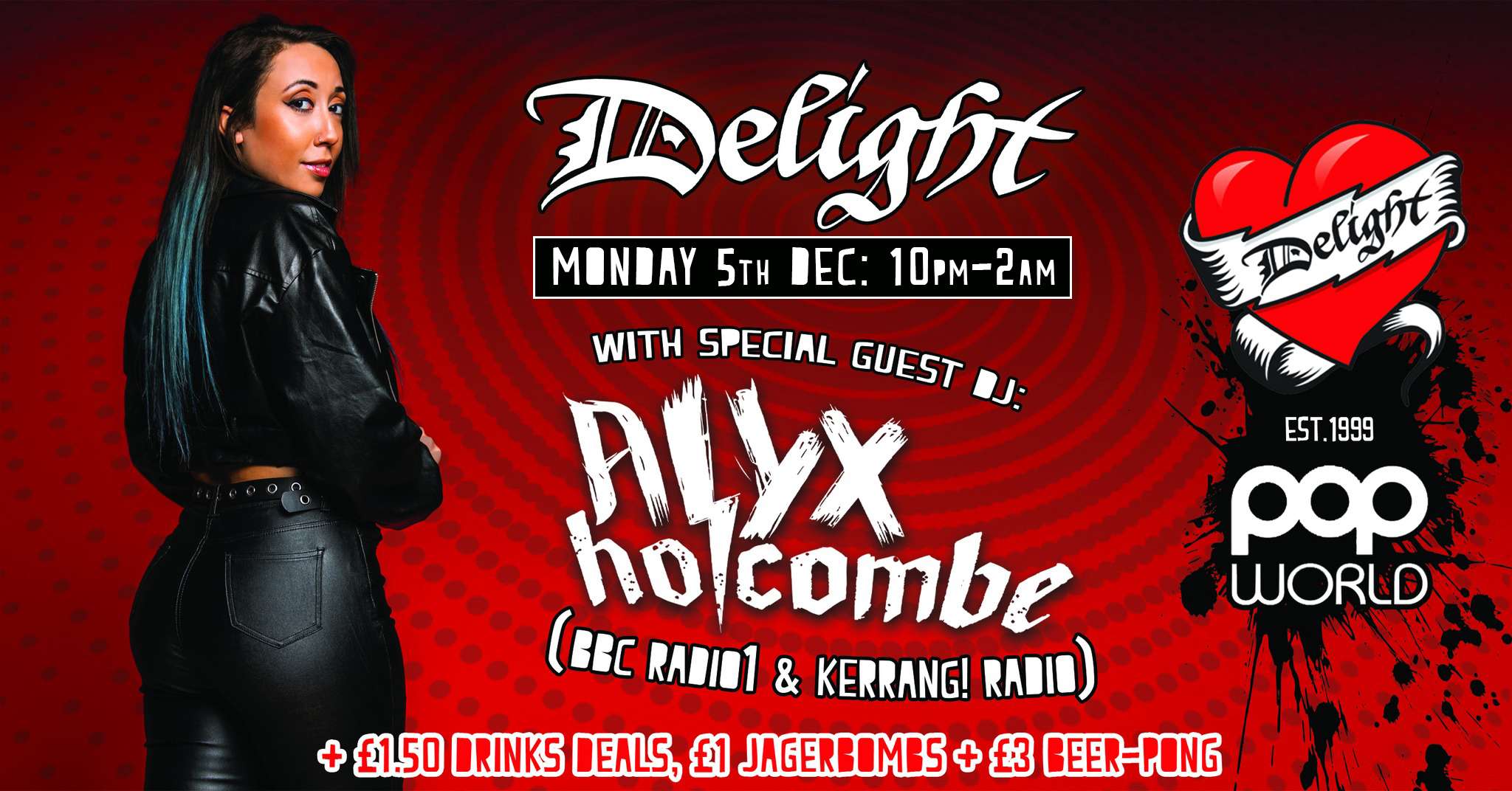 Joining the Delight debauchery is BBC Radio1, Kerrang! radio DJ Alyx Holcombe.