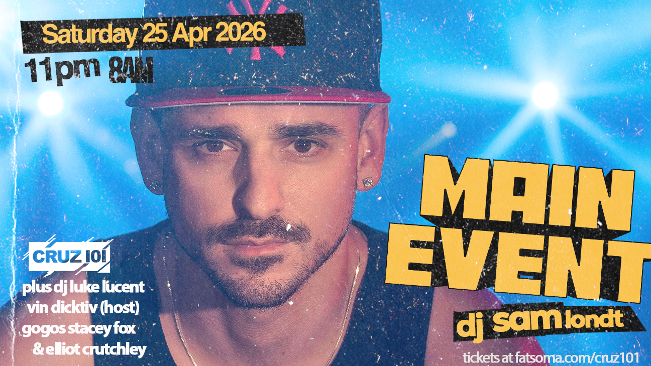 Sam is joined by Cruz resident DJ Luke Lucent, plus hostess with the mostess Vin Dicktiv and JCruz gogo dancers Stacey Fox & Eliot Crutchley