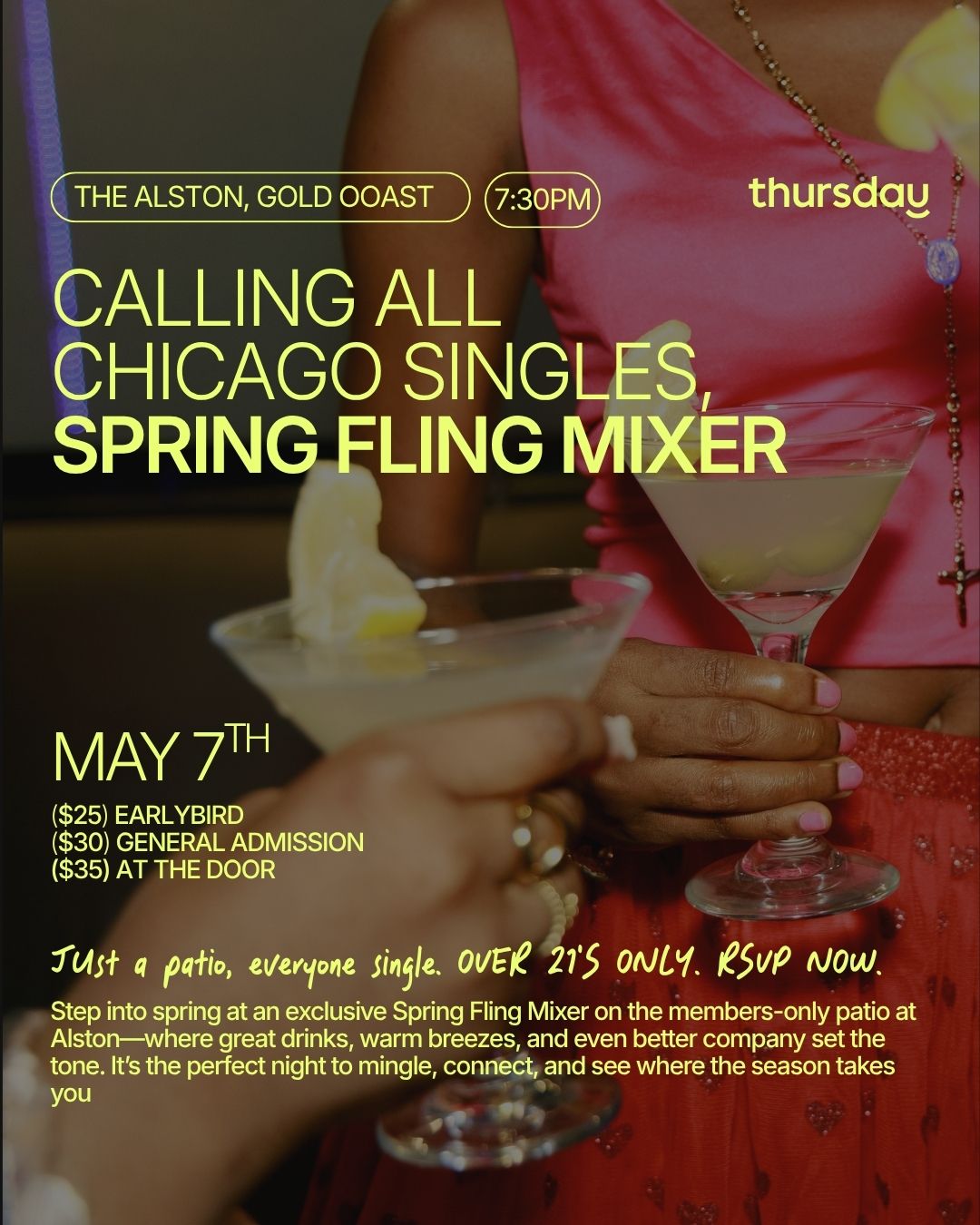 Step into spring at our Spring Fling Mixer on the exclusive members-only patio at Alston 🌸 Sip cocktails, soak up the sunshine, and mingle with a vibrant crowd in a fresh, flirty atmosphere. Spring colors and florals are highly encouraged—so bring the energy, the style, and maybe leave with something (or someone) new ✨