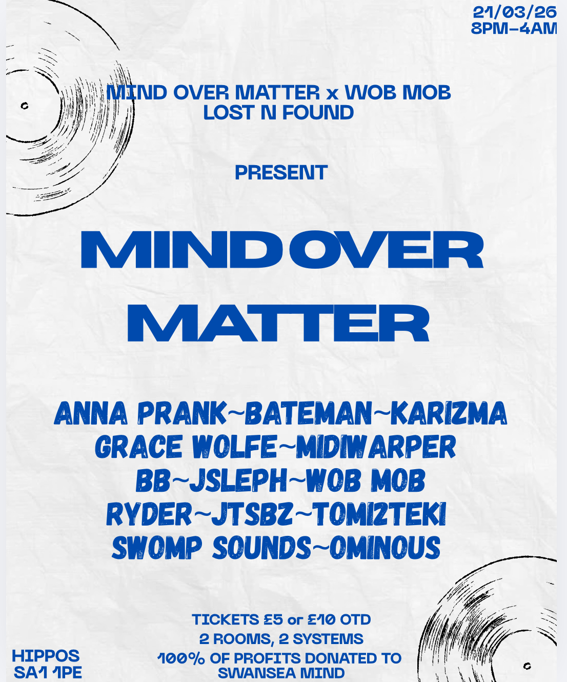 We’re bringing the Mind Over Matter tour to Swansea with a night built around connection, community and supporting mental health! All In a safe, welcoming space where everyone’s got each other.