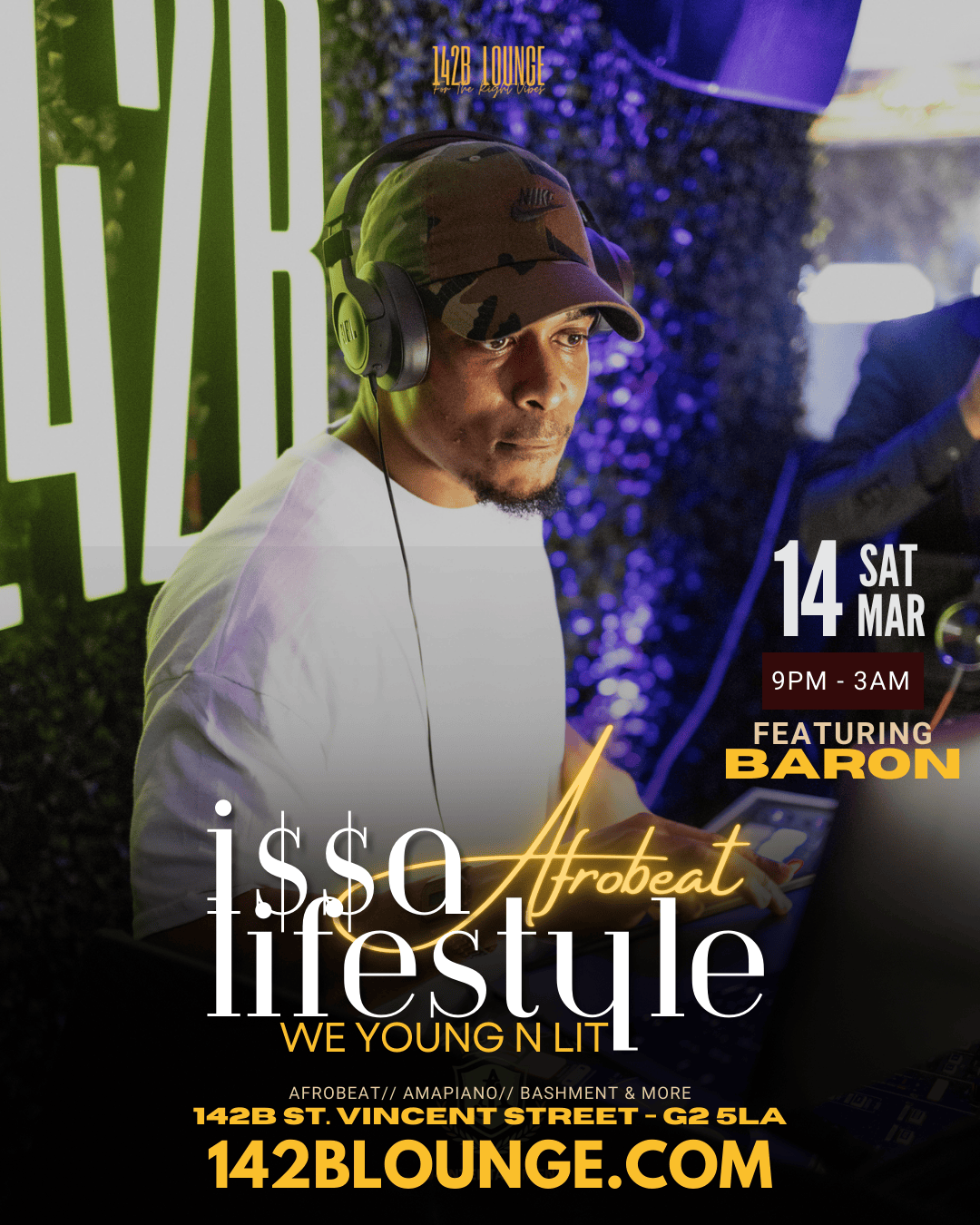 #IssaAfrobeatLifestyle #MarchTingz #142BLounge #BaronOnTheBeat #DJFlex #HypemanG1 #AfrobeatShutdown #AmapianoWave #BashmentMadness #GlasgowOutside #CertifiedVibesOnly #WeOutside #SaturdayShelling