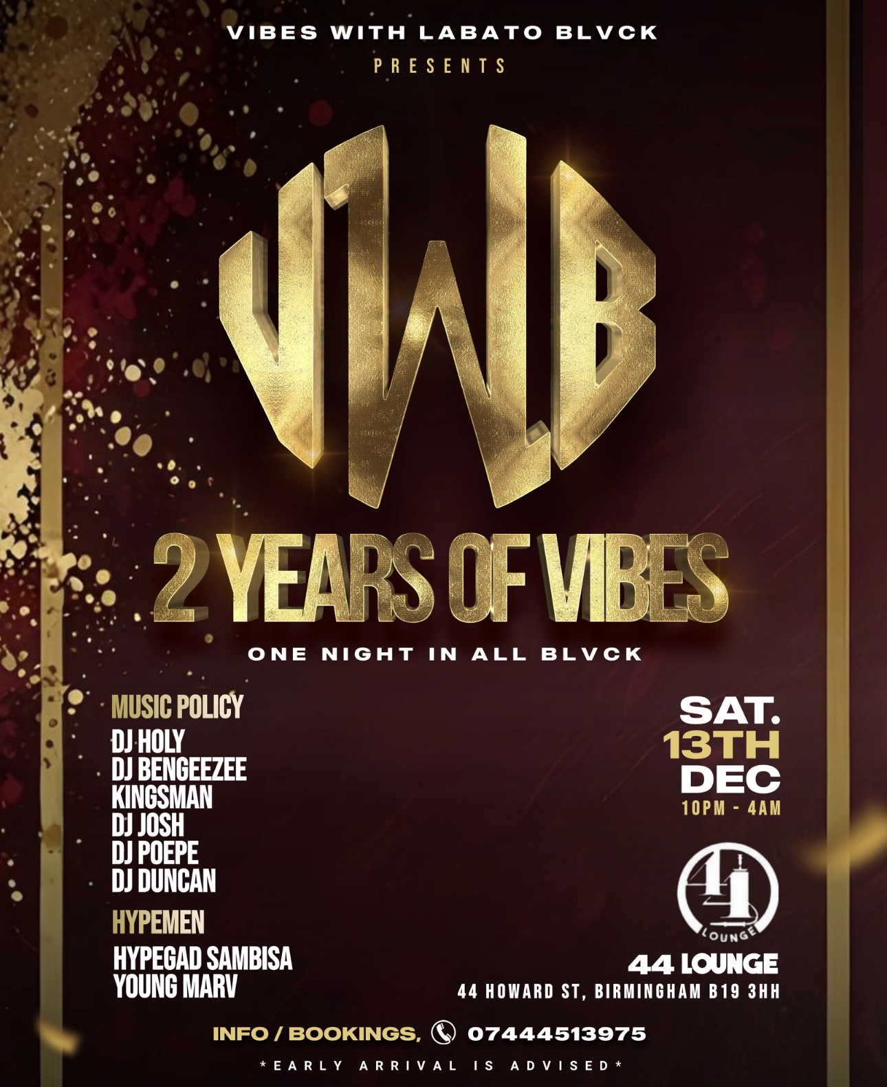 Vibes with Labato BLVCK: 2 Years of Vibes isn’t just another party it’s a celebration of culture, energy, and unforgettable moments that have shaped Birmingham’s nightlife.