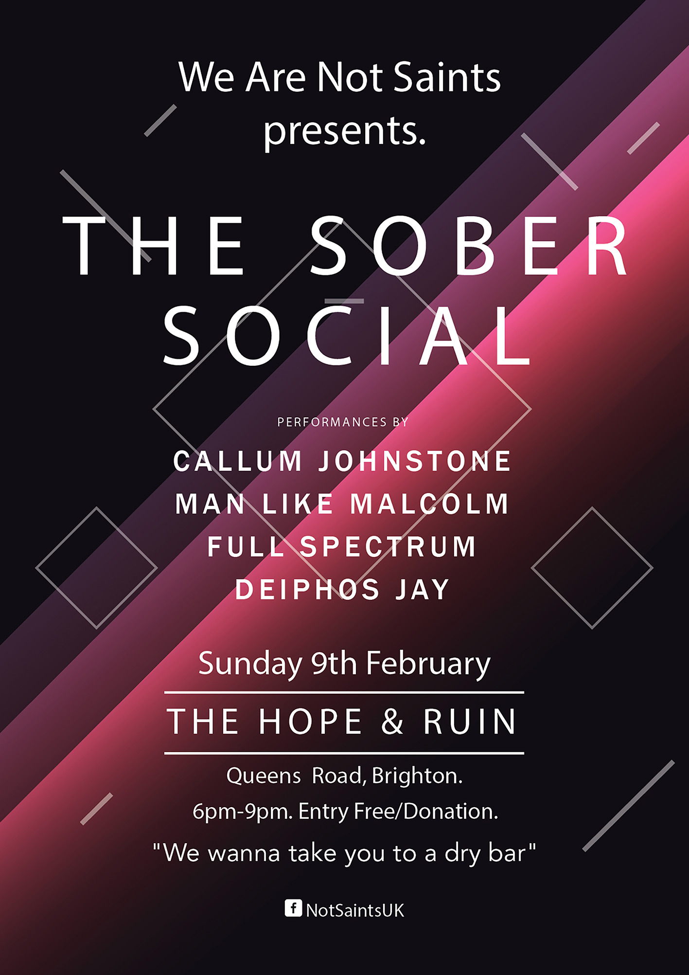 Following the huge success of our We Are Not Saints presents.... events in 2019 we've been working hard to bring you alcohol free events and the best in recovery music in some of Brighton's best known venues.