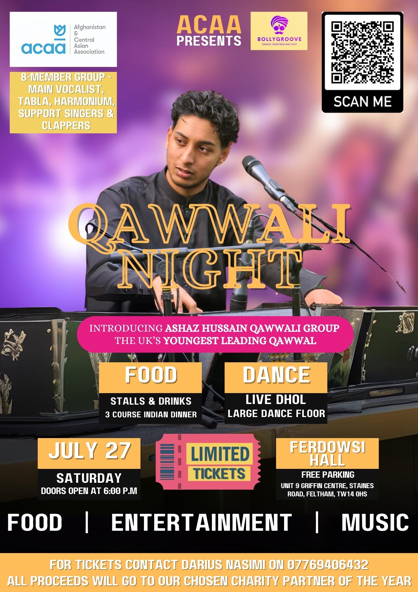 We are having yet another QAWWALI NIGHT on Saturday 27th July 2024 at 6pm at Ferdowsi Hall. All proceeds will go to our chosen charity partner of the year.