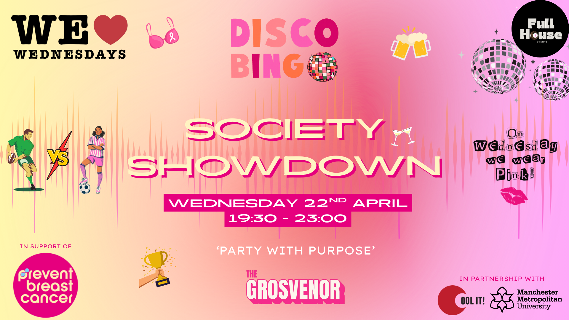 Join us for a night of DISCO BINGO and society battles where students will go HEAD TO HEAD to win HUGE prizes and claim the title of THE BEST SOCIETY 👑 🪩 🏆