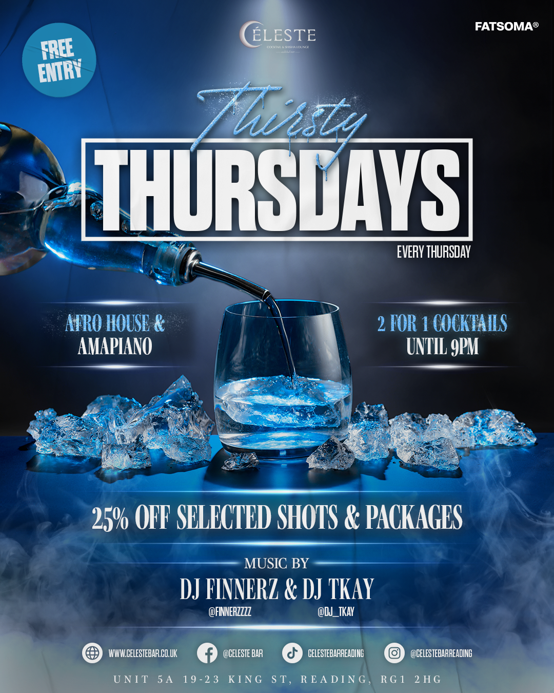 📍 Céleste Cocktail & Shisha Lounge, Reading