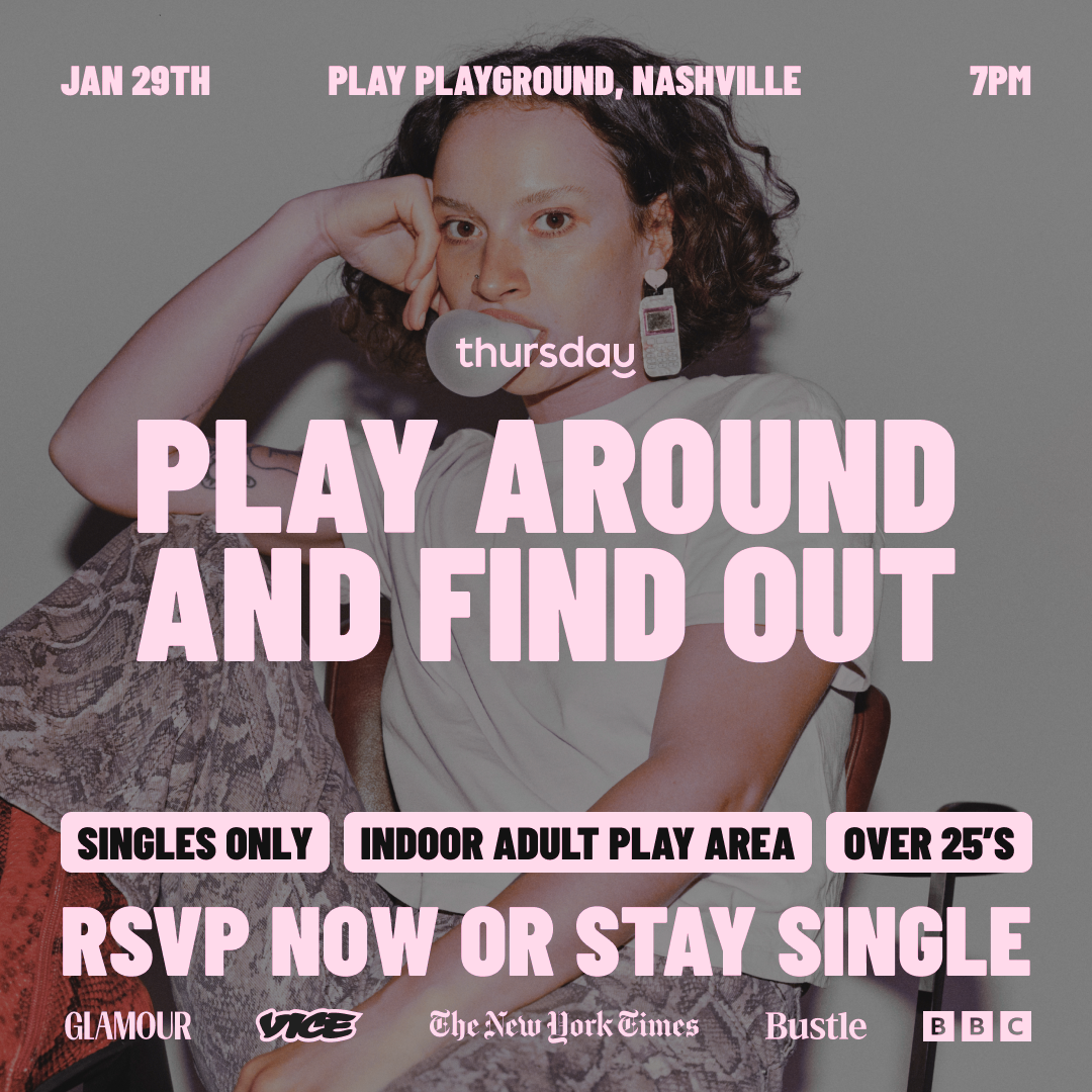 We’re heading to Play Playground in downtown Nashville — where being nervous is basically impossible, and fun does all the flirting for you 🩷 This adults-only playground is packed with games, challenges, and playful moments that make meeting people feel easy (and way less awkward) 🛝 No forced conversations, no standing around wondering what to say — just jump in, play, and let the games do the rest 🎪