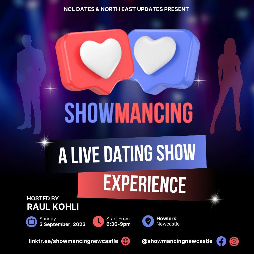 "Showmancing" is an exciting new collaboration between North East Updates and NCL Dates. The interactive live show will be the first of its kind in the UK, offering audiences an immersive new way to experience their favourite dating shows with a chance to take part and potentially find the one. Tickets are very limited so don't delay and miss out. The event will take place on Sunday 3rd September from 6.30-9.00pm - so you can have a drink (or 5!) and be OK for work on Monday!