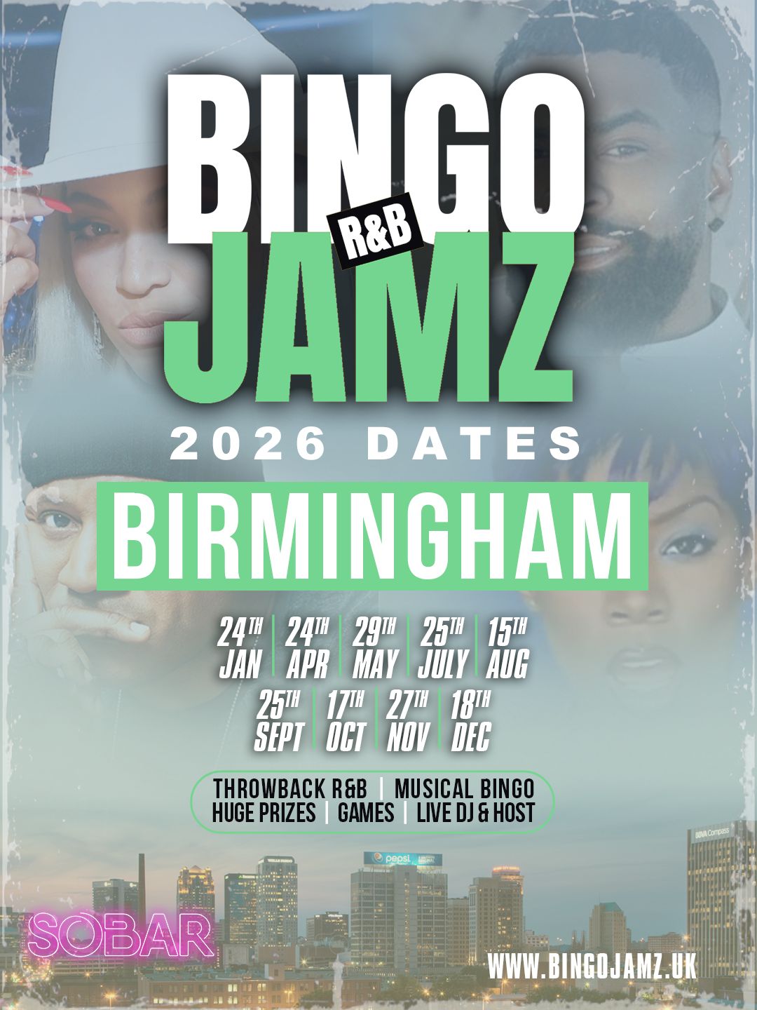 🎉 Welcome to BINGO JAMZ, your ultimate 90s and 00s RnB fix! Dive into an evening of immersive fun, games, prizes, and those irresistible slow jamz that defined an era.