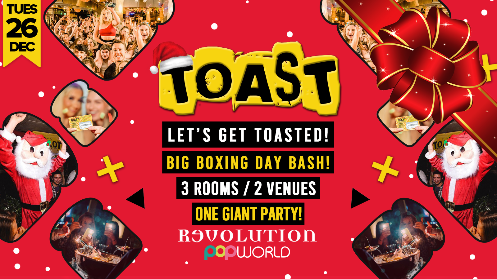 Christmas is great and all, but after two days heavy consumption of pigs in blankets and Toblerone we're all ready to get back on the dance floor with the squad and enjoy a couple of slices of Toast. Don't miss out on the final Tuesday party of the year as we takeover both Revolution and Popworld with £1.50 drinks, 3 different rooms of music, big prize giveaways and of course free Toast with toppings all night long! 😍