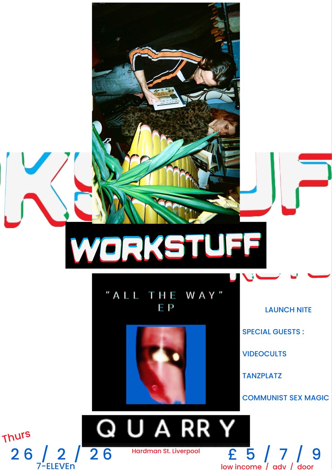 Workstuff presents the launch of their debut EP as a band, “ALL THE WAY”, produced by the legendary Ste Cole. Joined by some of our favourite North-Western Space Cadets, this will be a night of avant garde electronic, psychedelic and art pop. Featuring: