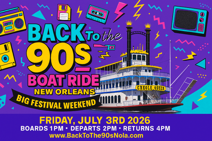 Big Festival Weekend, hop aboard the legendary Creole Queen for the dopest 90s-themed boat ride New Orleans has ever seen! It’s throwback vibes, good energy, and non-stop hits while we cruise the Mississippi.