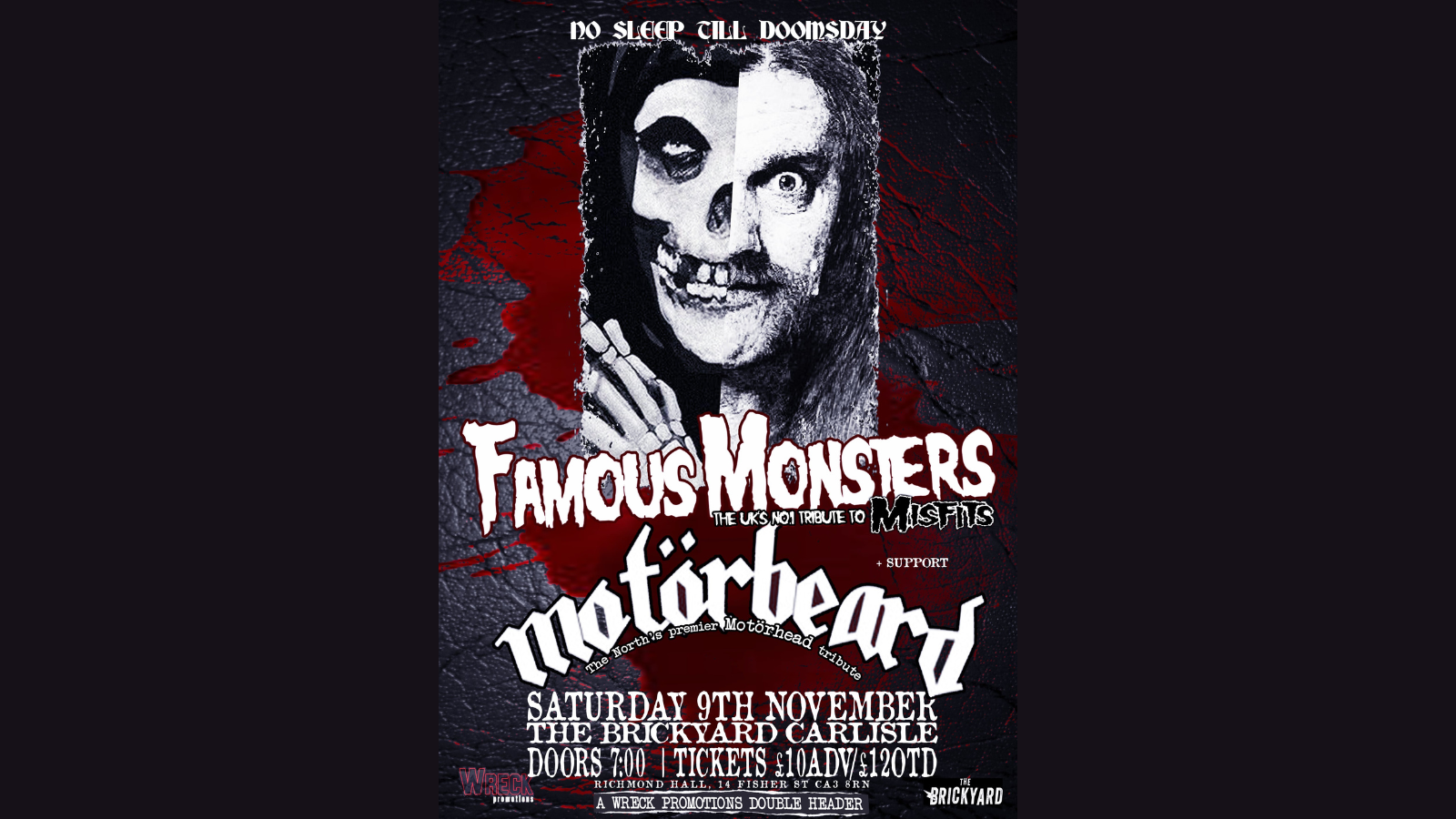Wreck Promotions Presents a huge double header tribute night to The Misfits & Motorhead!