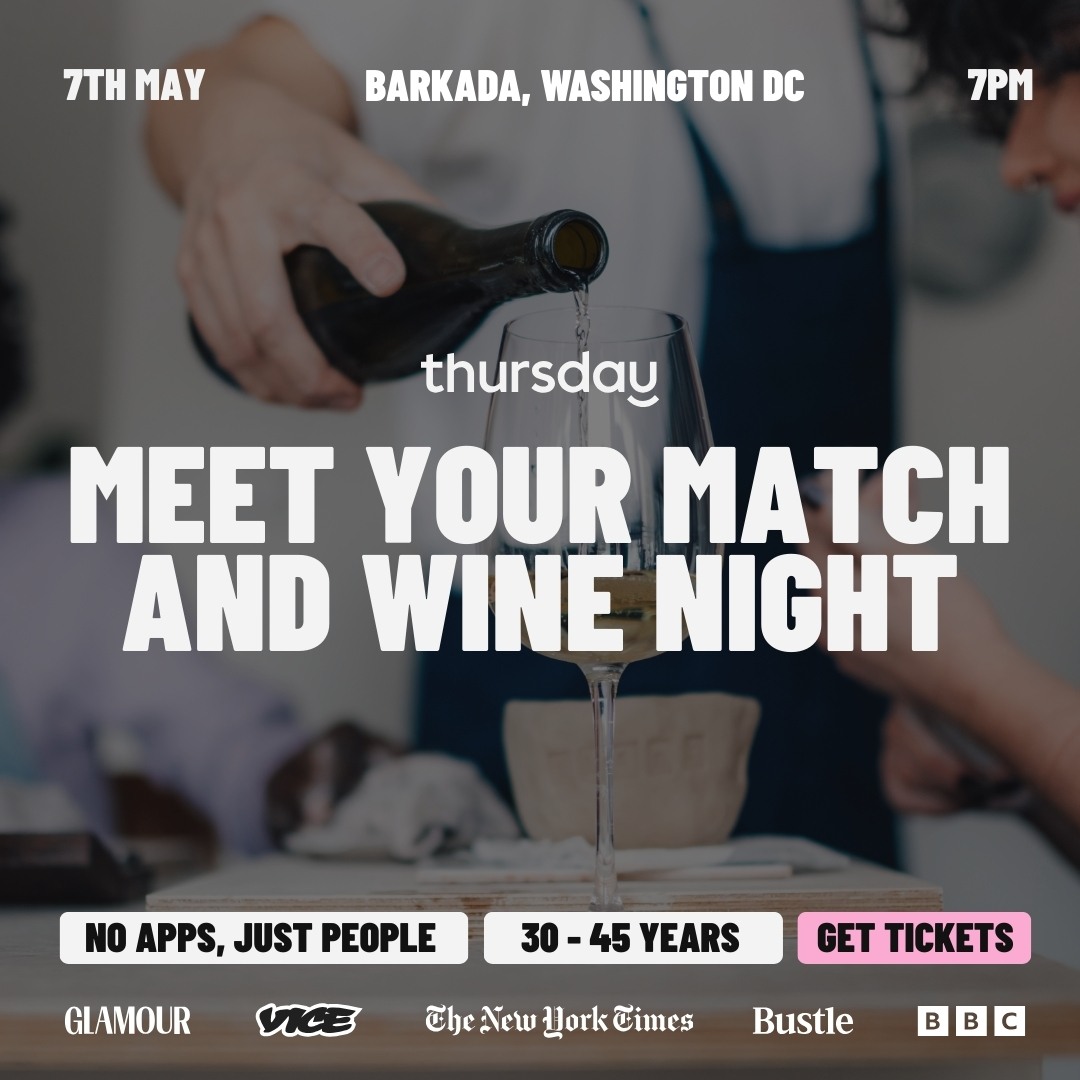 Our favorite wine bar in D.C. is back hosting the biggest real-life dating brand â and this time, itâs all about 30+ singles. Join us on MAY 7TH, for an evening of great conversation, good vibes, and even better wine.