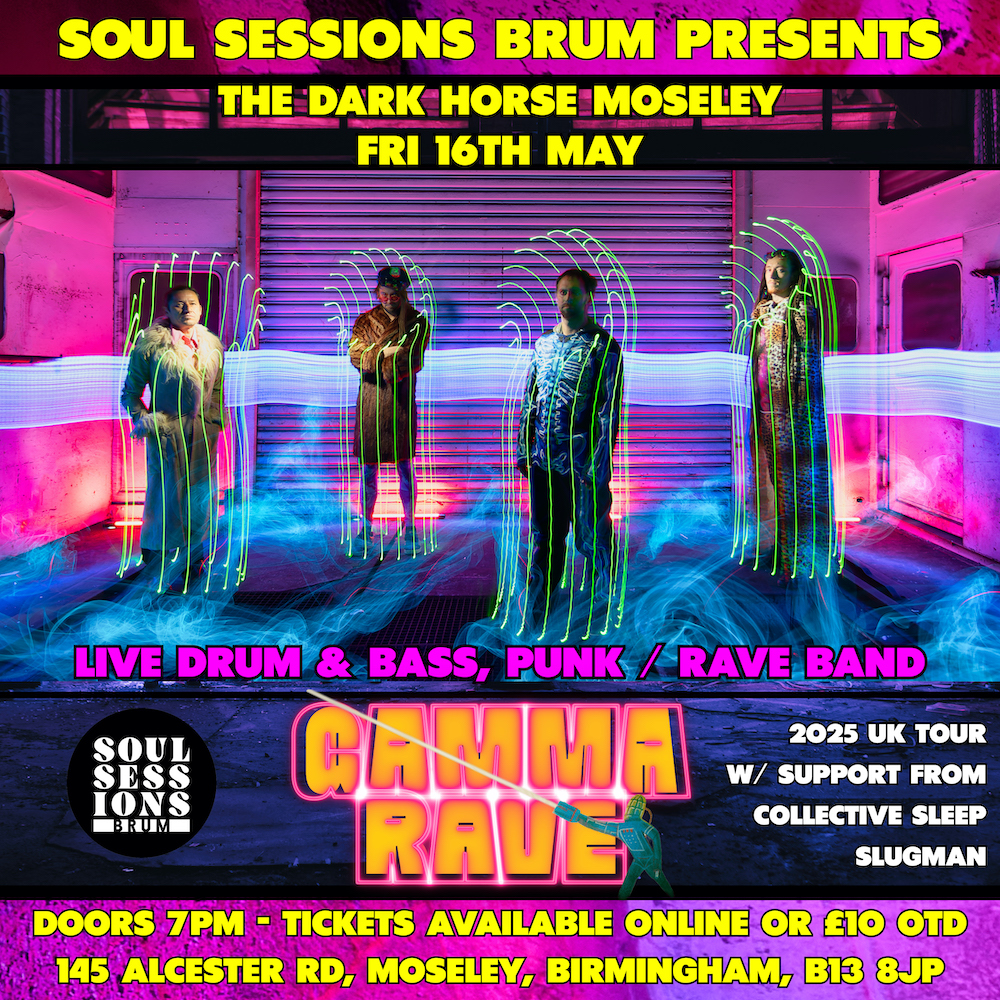 Don't miss Belgium based Live Drum & Bass, Punk and Rave band Gamma Rave on their UK tour at The Dark Horse Moseley on Friday 16th May 🔥
