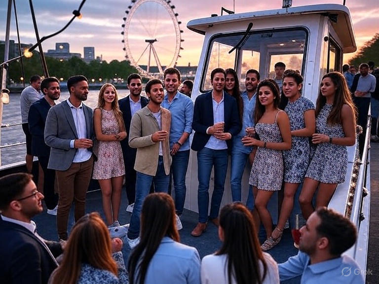 At **8:00 PM sharp**, weโll board our stylish party boat for a magical cruise along the Thames. ๐ข As we glide through the heart of London, youโll be treated to unparalleled views of iconic landmarks like the **London Eye** ๐๏ธ, **Tower Bridge** ๐, **Big Ben** ๐ฐ๏ธ, and the twinkling city skyline. ๐ The boatโs lively ambiance, complete with a top-notch sound system and dance floor, will keep the energy high as you mix and mingle with other singles. ๐๐บ