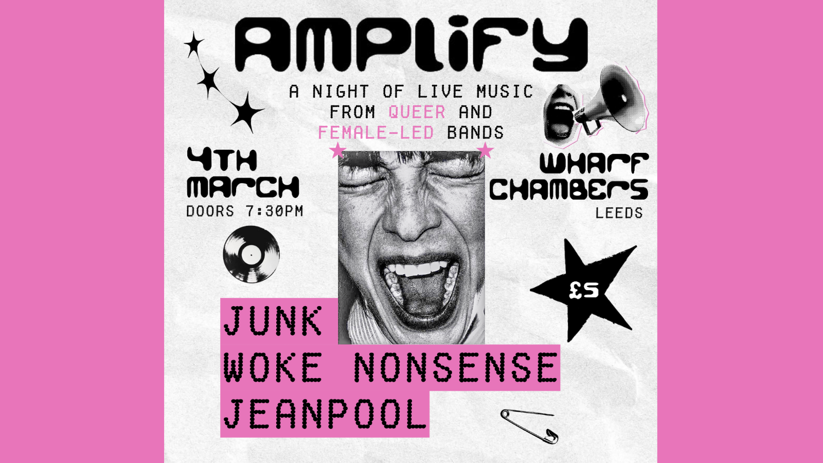 AMPLIFY is a student-led gig showcasing queer and female-led bands at Wharf Chambers. For fans of indie and alternative rock, shoegaze, and riot grrrl.