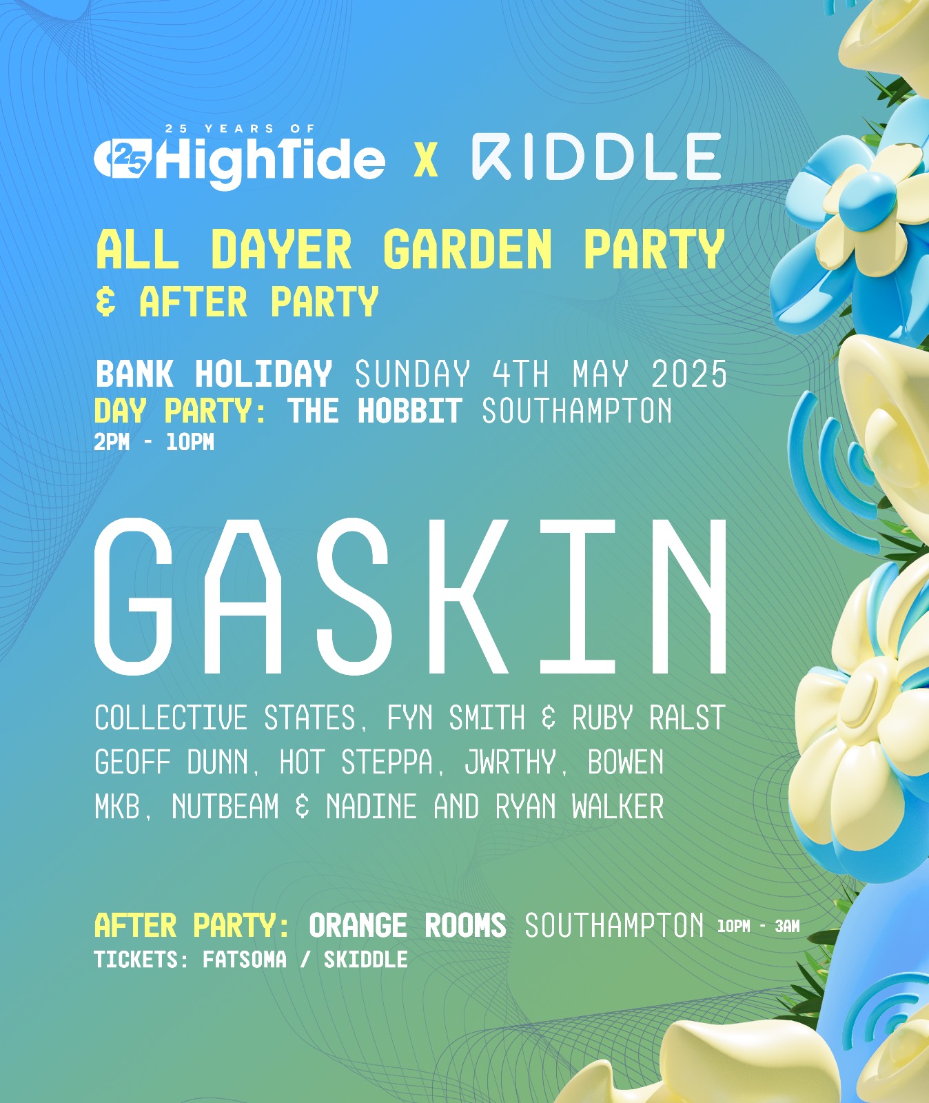 High Tide & Riddle team up for their only Garden Party of 2025. High Tide are long standing Southampton based promoters best known for their infamous boat parties spanning 25 years, who also run events across the city, London and Ibiza. Portsmouth based Riddle events has been running sell-out events across Pompey and Southampton, filling out venues and booking some of the hottest house acts of the moment.