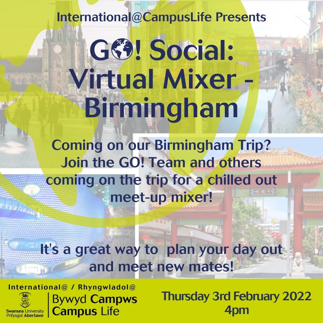 Are you coming along on our GO! Trip: Birmingham? (see here for details) - if so, International@CampusLife welcomes you to our Virtual Mixer - Birmingham!