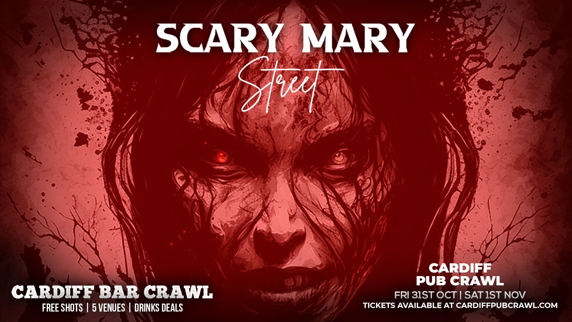 Cardiff has never looked so eerie. On this haunted night, the only thing scarier than the monsters are the dry pubs. So grab your drinks, hold your friends close, and prepare for Scary Mary Street where the booze is your best defence against the supernatural!