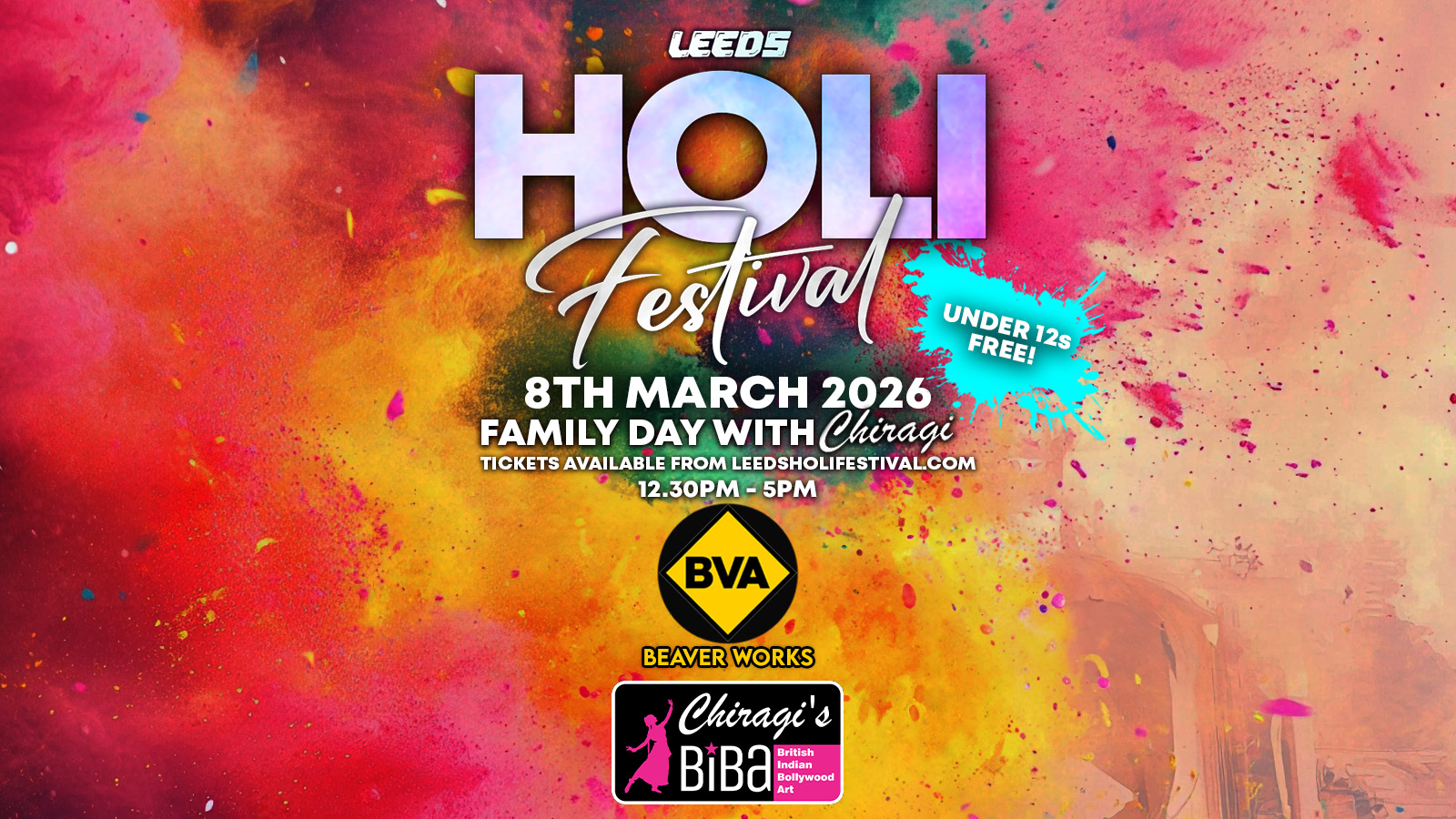 Get ready for the most colourful day of the year! 🎉 Join us for Leeds Holi Festival X Chiragis Bibas Family Day on Sunday, 8th March 2026.