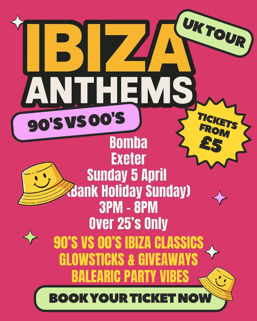Secure yours now and be part of Exeter’s ultimate Ibiza throwback. Once they’re gone, they’re gone.