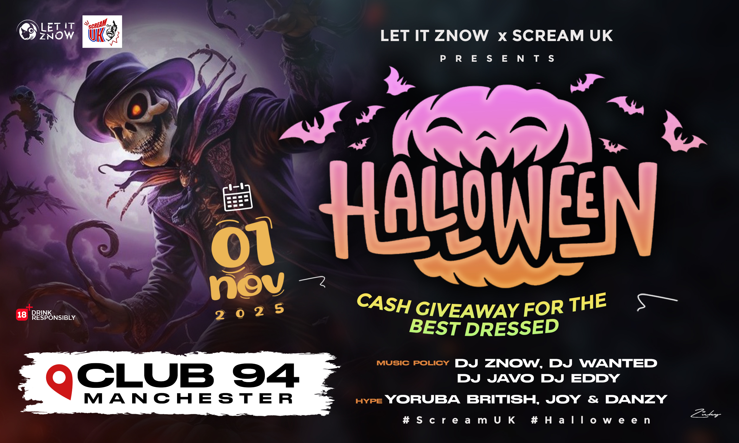 Join us for a killer night at CLUB 94 – MANCHESTER on November 1st! 🕷️💀