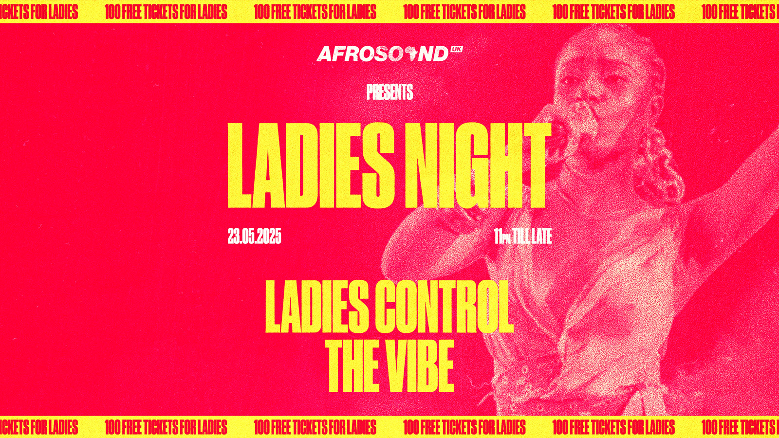 Ladies, this one’s for you. You choose the sound. We bring the energy. AfroSound UK invites you to Ladies Night, where Afrobeats, R&B, Amapiano, Hip Hop, and Reggae are on tap — and you're in control. The firestarter DJ Kweezus is on the ones and twos, ready to spin whatever you’re feeling.