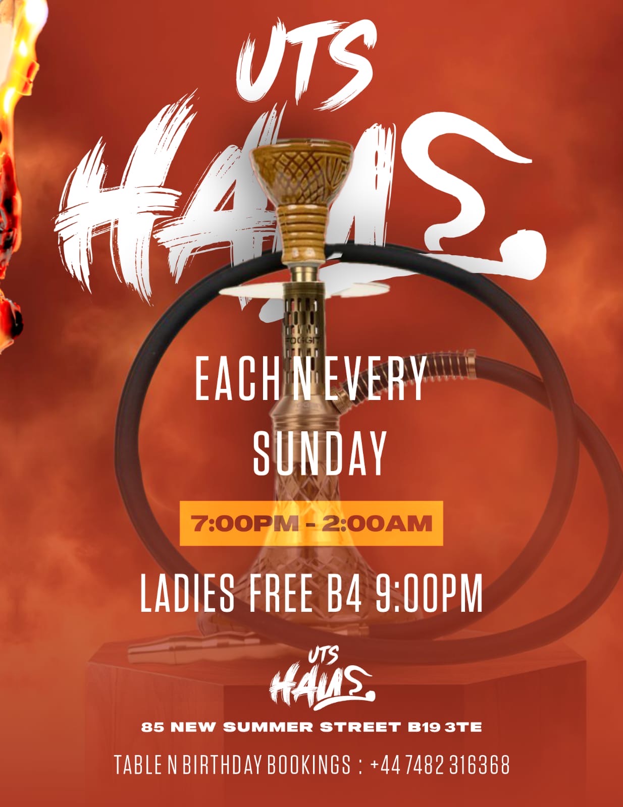 Every Sunday night, UTS HAUS goes all the way up. If you’re looking for real vibes, smooth hookah, and grills that hit every time this is where you need to be.