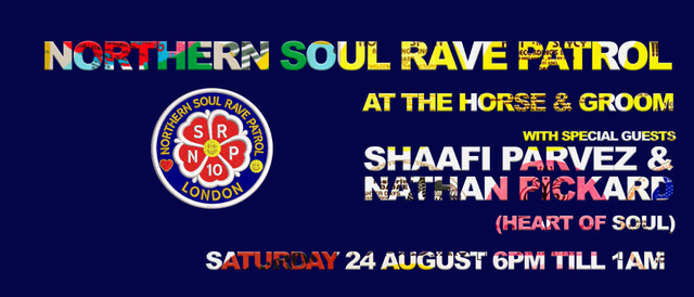 Following cracking parties with Terry Farley and then X-Press 2 the Northern Soul Rave Patrol return to the Horse & Groom on 24th August. They are joined by two bright young things of the new wave of soul sweeping London and the UK - Shaafi Parvez and Cleethorpes’ Nathan Packard - key DJs at Lewisham’s amazing Hearty Of Soul club where you will find a packed out room of under 25s dancing to rare Northern Soul, Disco, Funk, early House and much more. Most of all you will find excitement and energy and that’s what the lads will be bringing to the H&G on 24 August. One not to be missed.