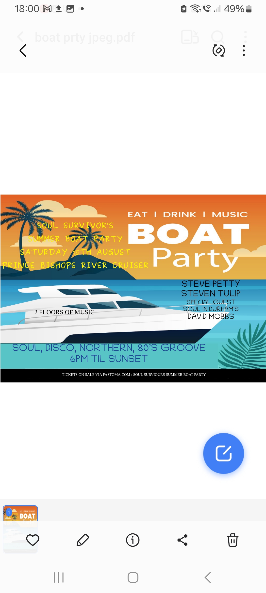 Boat departs 6.30 pm so be onboard prompt
