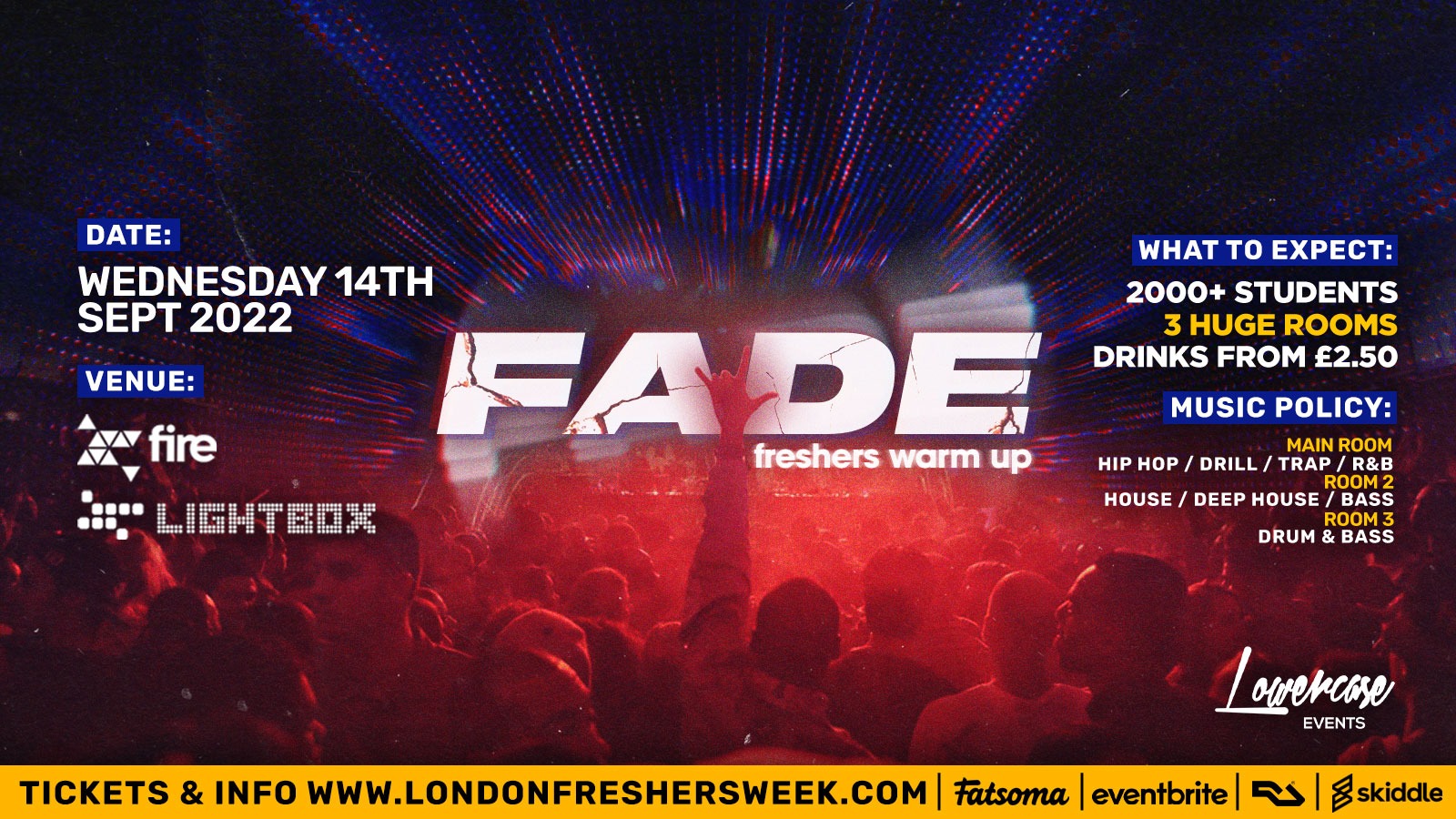 Fade is here to bring you the BIGGEST midweek student night combining the sickest party experience at student prices! Fade has been designed from venue choice to music policy to completely reshape Wednesday nights in London.