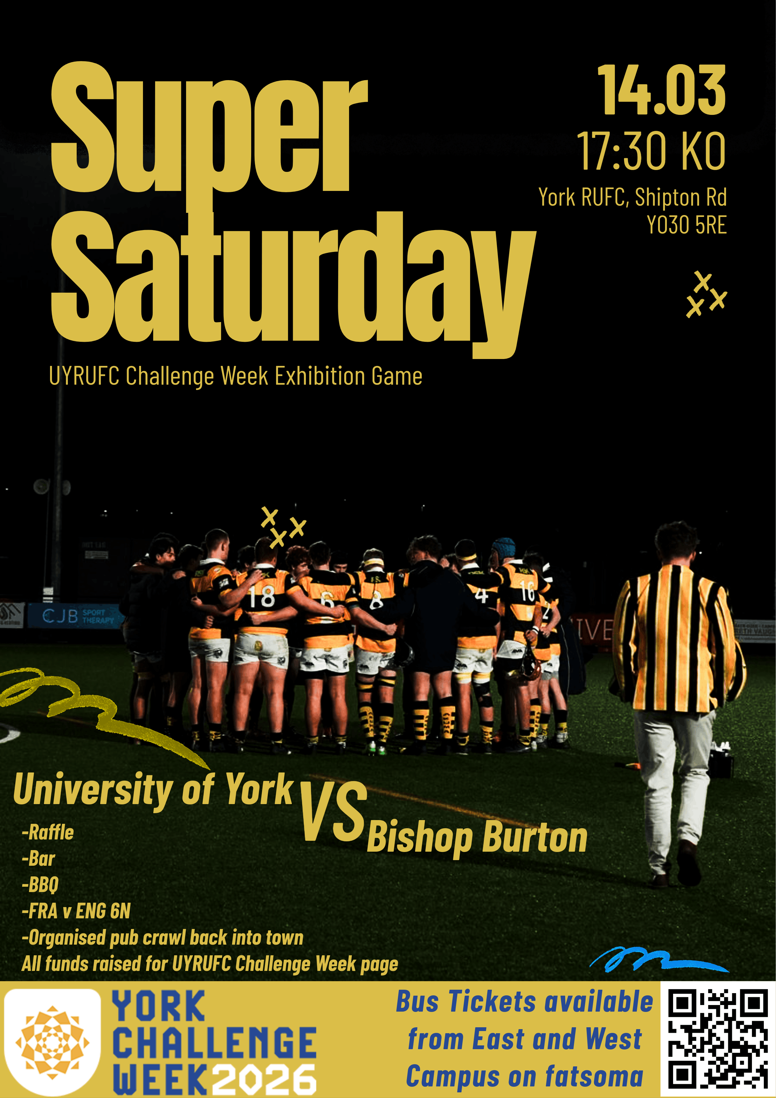 Bus ticket for the University of York RUFC vs Bishop Burton match hosted at Shipton Road (York Rugby Club).