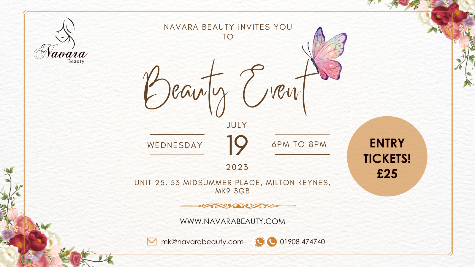 Navara Beauty Invites you to our first ever Beauty Event on Thursday 8 June between 5pm and 7pm at our Milton Keynes Branch in Midsummer Place branch.