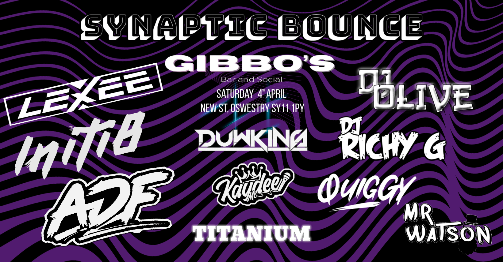THE LINEUP DJs: INITI8 | ADF | LEXEE | QUIGGY | OLIVE | MR WATSON | RICHY G MCs: DUWKINS | TITANIUM | KAYDEE