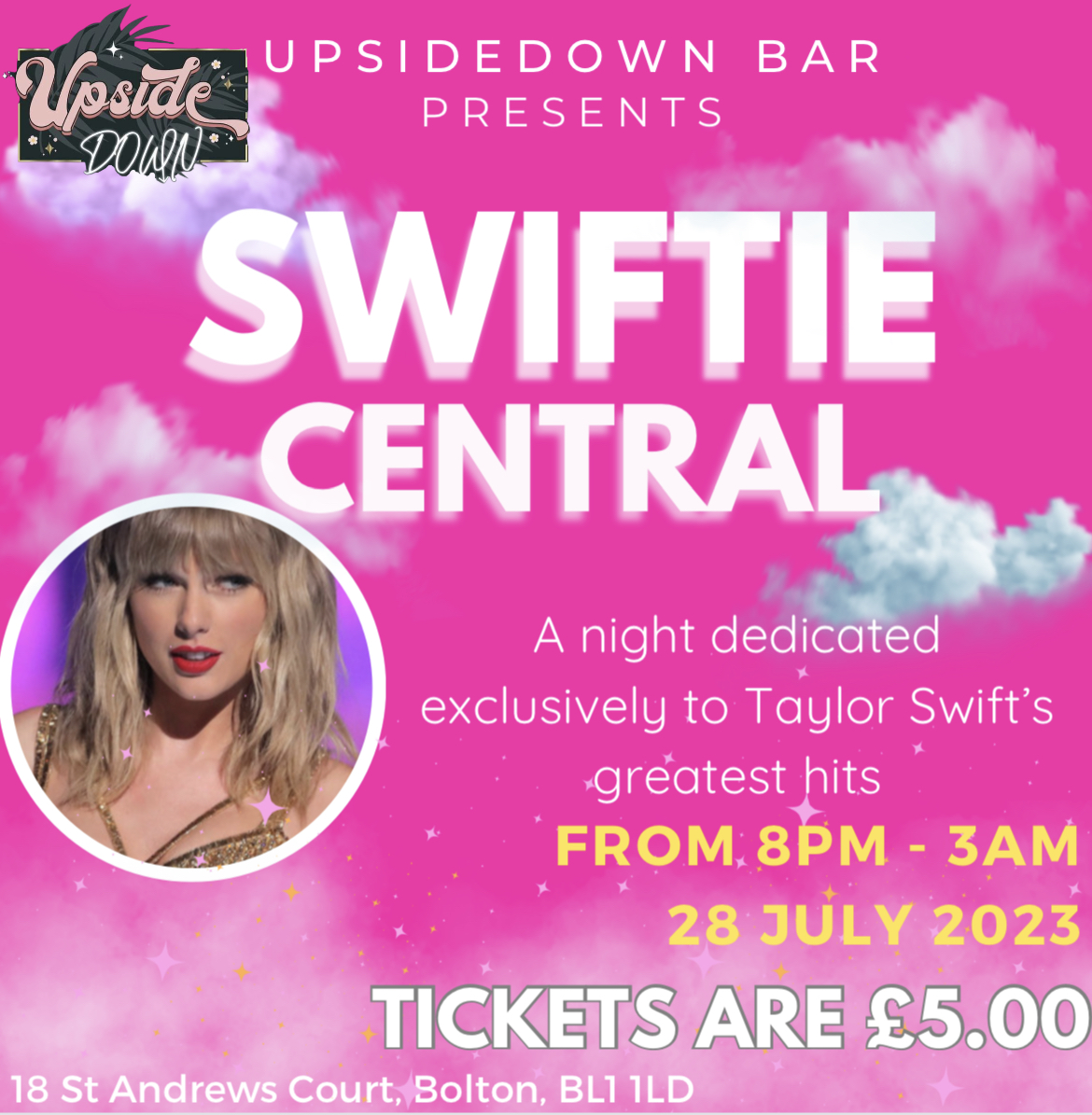 We are SO EXCITED to announce our FIRST EVER EVENT NIGHT!!! Announcing SWIFTIE CENTRAL at the UPSIDEDOWN. The Eras Tour comes to Bolton!!!
