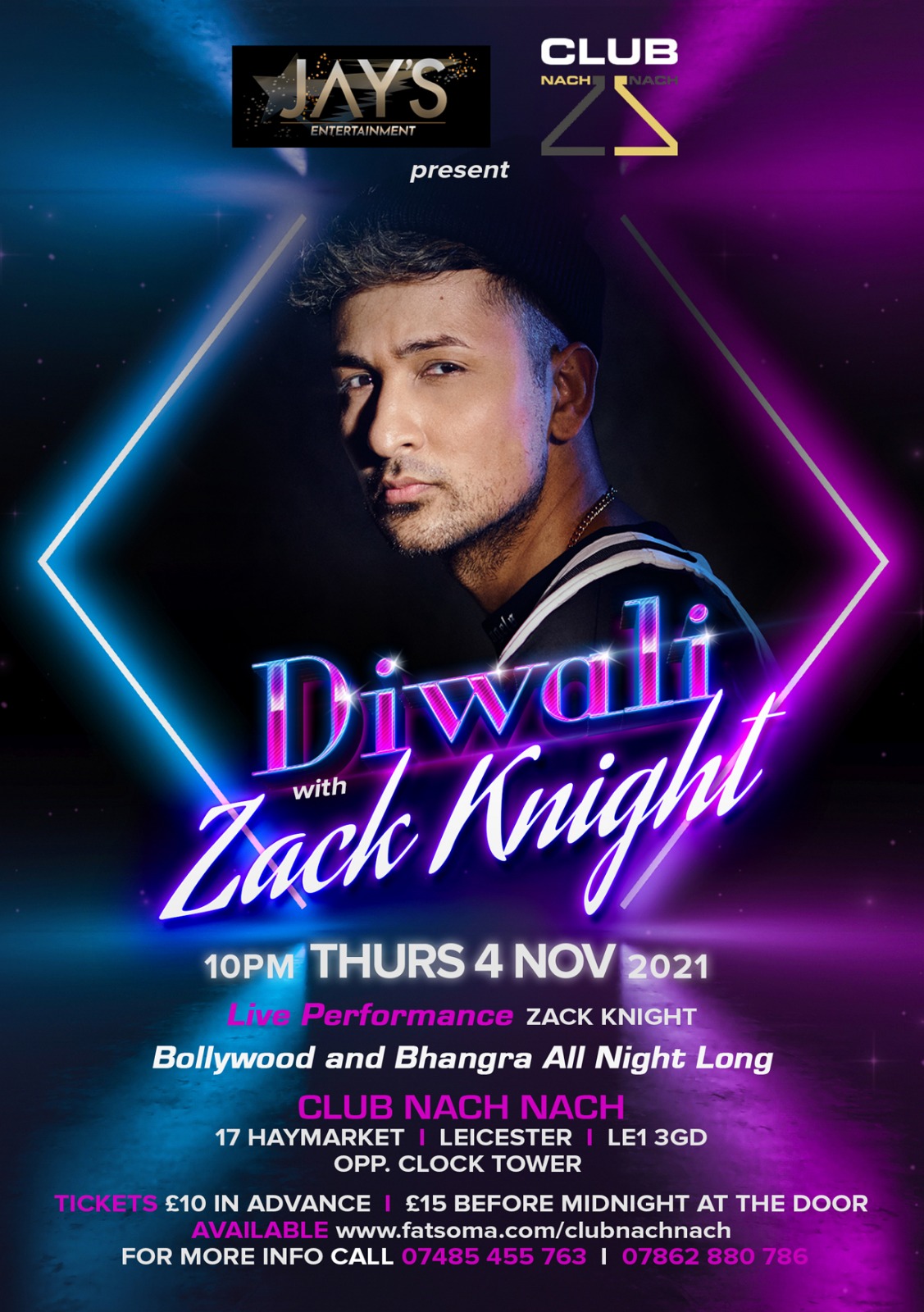 INTERNATIONAL SENSATION ZACK KNIGHT WILL BE PERFORMING ON DIWALI NIGHT AT CLUB NACH NACH IN LEICESTER ON NOVEMBER 4TH!