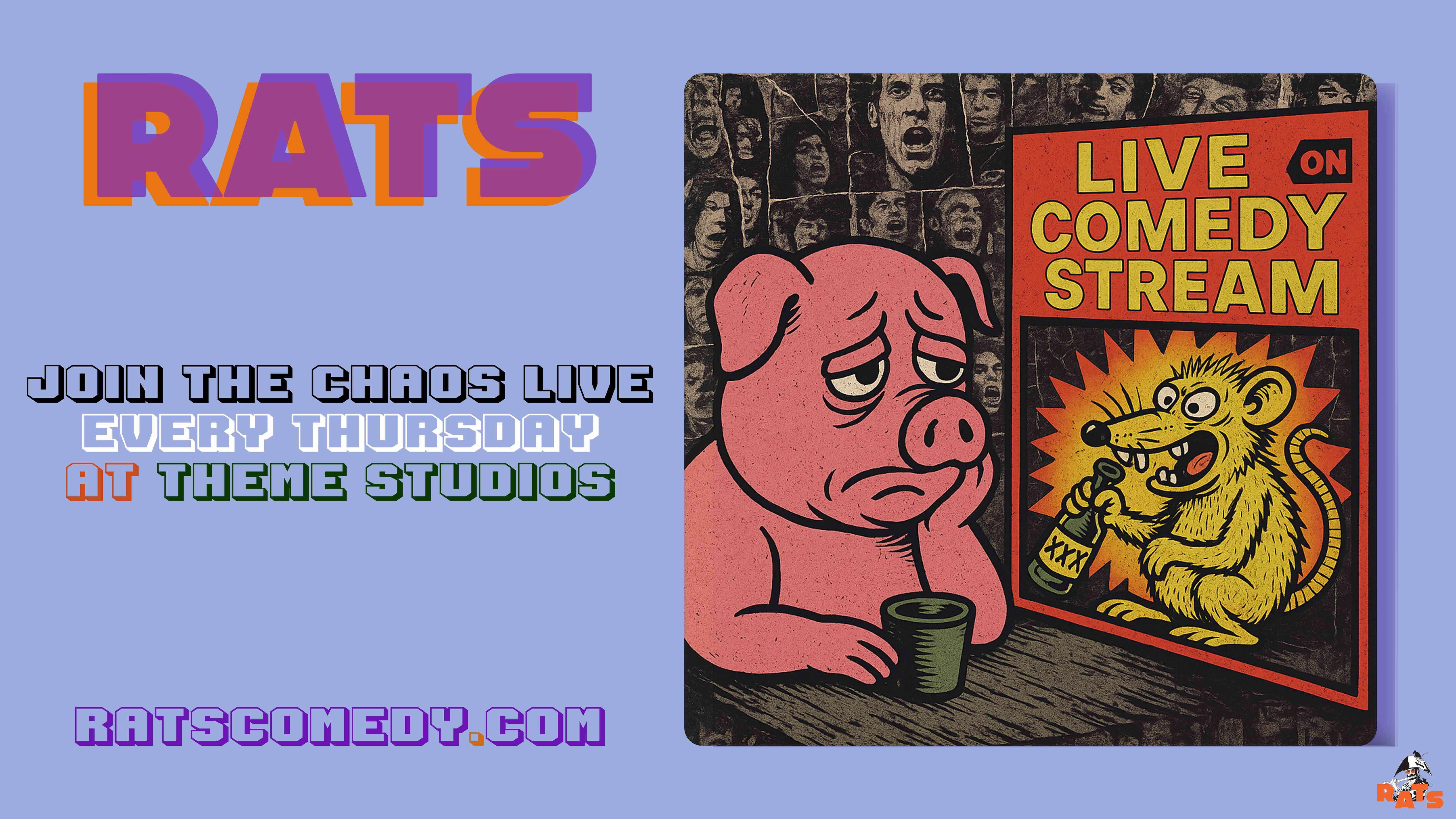 And don’t even think of blinking during the infamous Rat Chat, a full-throttle, in-show gauntlet of unfiltered weirdness, audience chaos, and general ratgasmic nonsense. Bring a date, a mate, your emotionally distant cousin, who cares. Just show up. After all, this isn’t just a comedy night. It’s a mistake you’ll love making.
