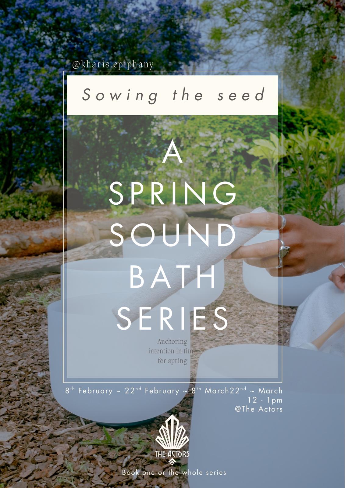Join Kharis Epiphany, a certified sound practitioner and teacher with almost 20 years experience, in meditation and esoteric practice. As we journey toward the Spring Equinox, this four-part sound bath series invites you to attune to the quiet intelligence of new beginnings. Guided by the wisdom of the seasons, we tune into the seeds of inspiration asking to be sown—then gently nurture their growth from subtle spark to embodied action.
