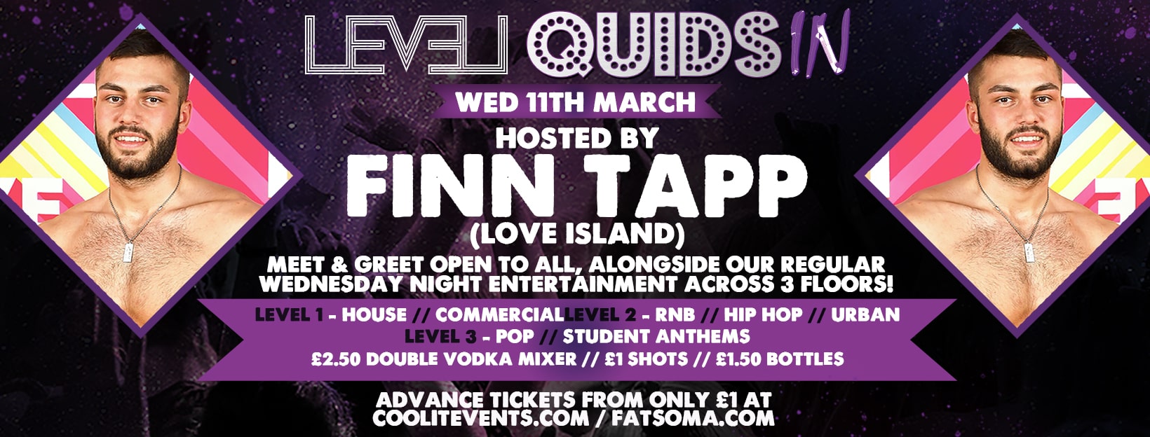 - Wed 11th March : Hosted by Finn Tapp from Love Island! -