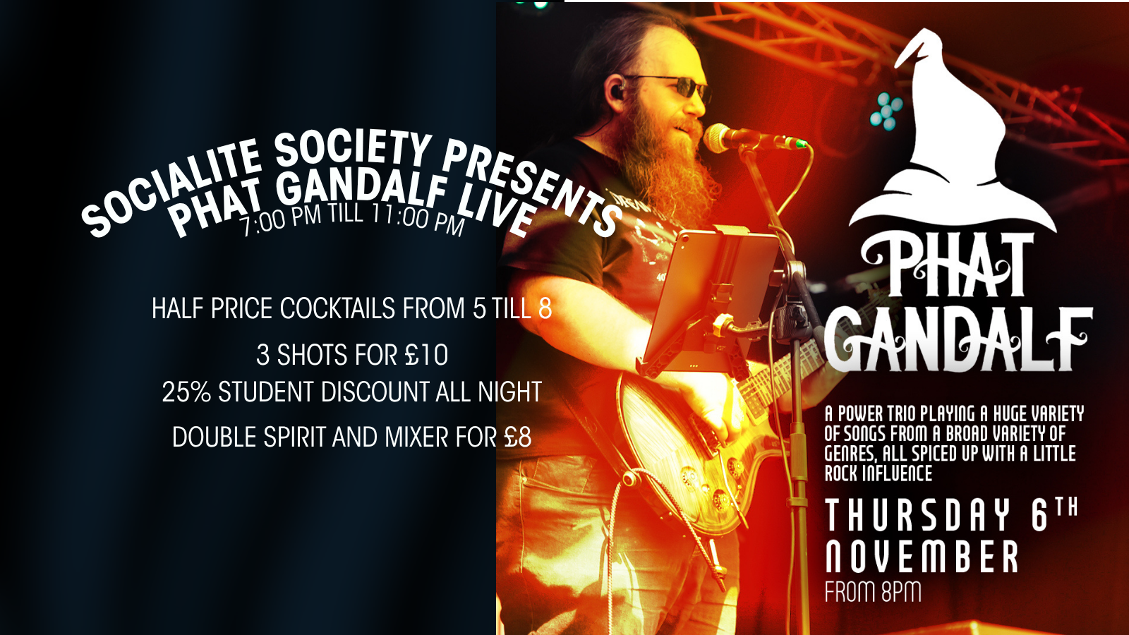 We’re takin’ over the Socialite Rooftop — skyline behind ya, pint in hand, and Canterbury’s most popular cover band Phat Gandalf bringing the noise.