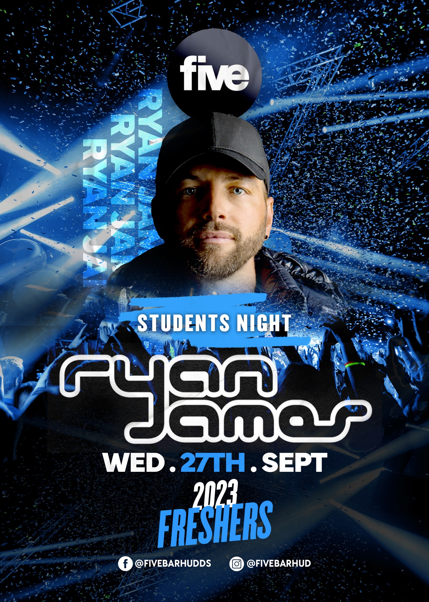 Join us for an unforgettable night of music and partying as we celebrate the grand reopening of Huddersfield's Five bar! We're excited to have Ryan James, one of the hottest DJs in the UK, spinning the latest tracks and keeping the dance floor packed all night long. Don't miss out on this incredible event and be a part of the Five experience!
