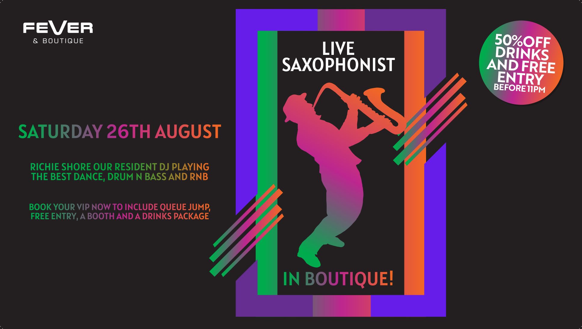 Tonight We Have A LIVE SAXOPHONIST Playing Alongside Our Resident DJ Richie Shore In Boutique. Bringing You All The Very Best Dance, Drum n Bass & RnB.