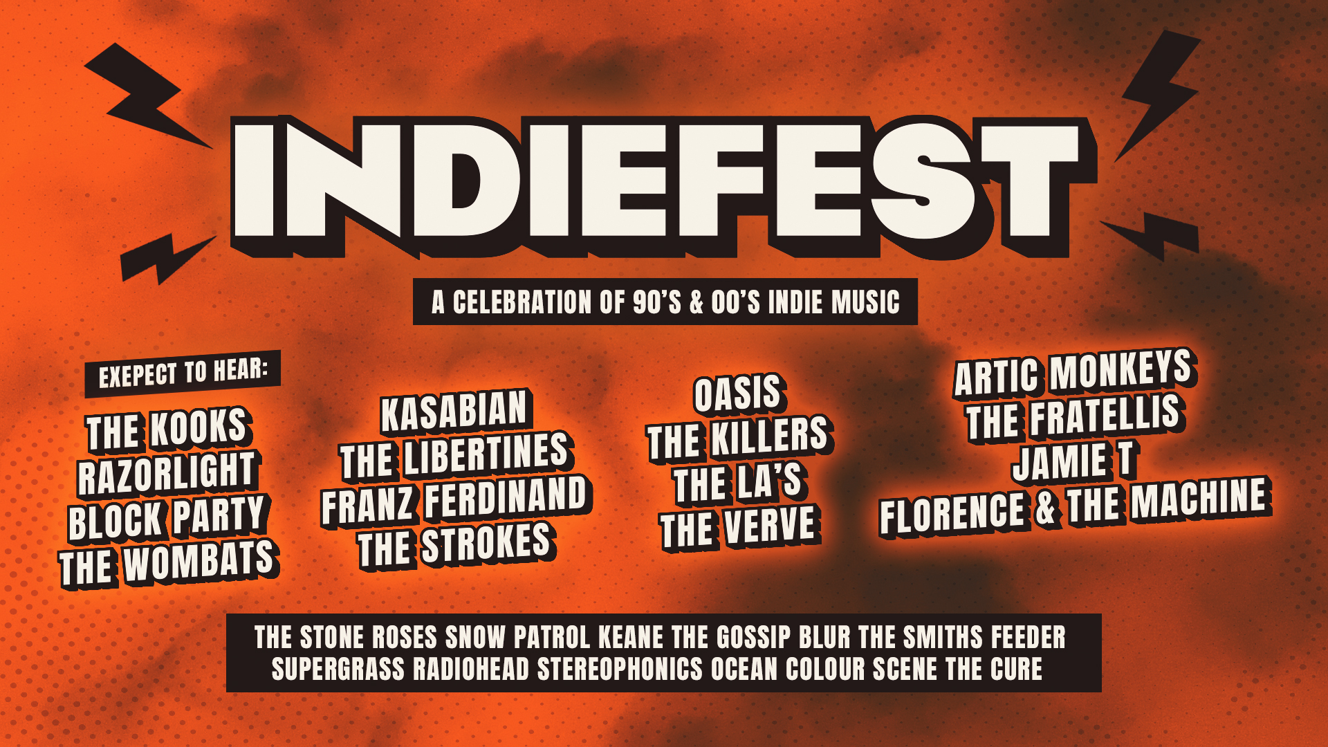 THE KOOKS / KASABIAN / RAZORLIGHT / OASIS / THE LIBERTINES / THE KILLERS / THE WOMBATS / ARCTIC MONKEYS / THE FRATELLIS / JAMIE T / FRANZ FERDINAND / THE LA'S / THE VERVE / THE STONE ROSES / SNOW PATROL / KEANE / SUPERGRASS / STEREOPHONICS / THE SMITHS / FEEDER / BLUR / THE CURE + MORE!