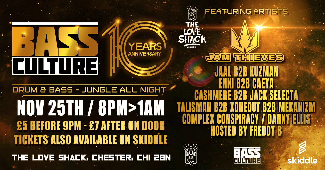 BASS CULTURE 10TH BIRTHDAY PRESENTS - JAM THIEVES HOSTED BY FREDDY B
