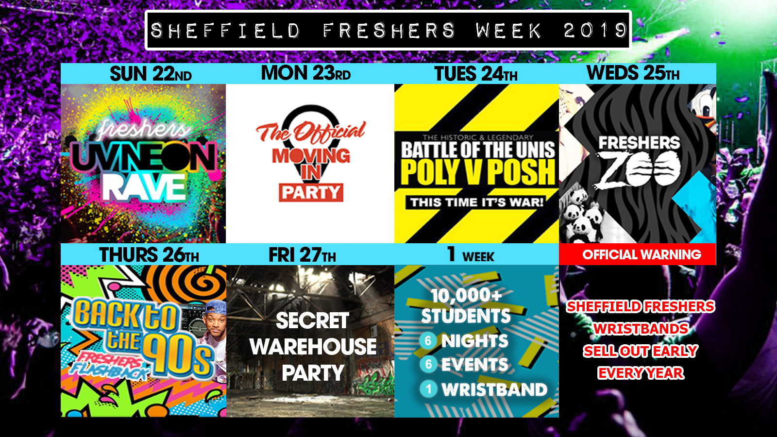 Tickets: www.sheffieldfresherswristband.co.uk