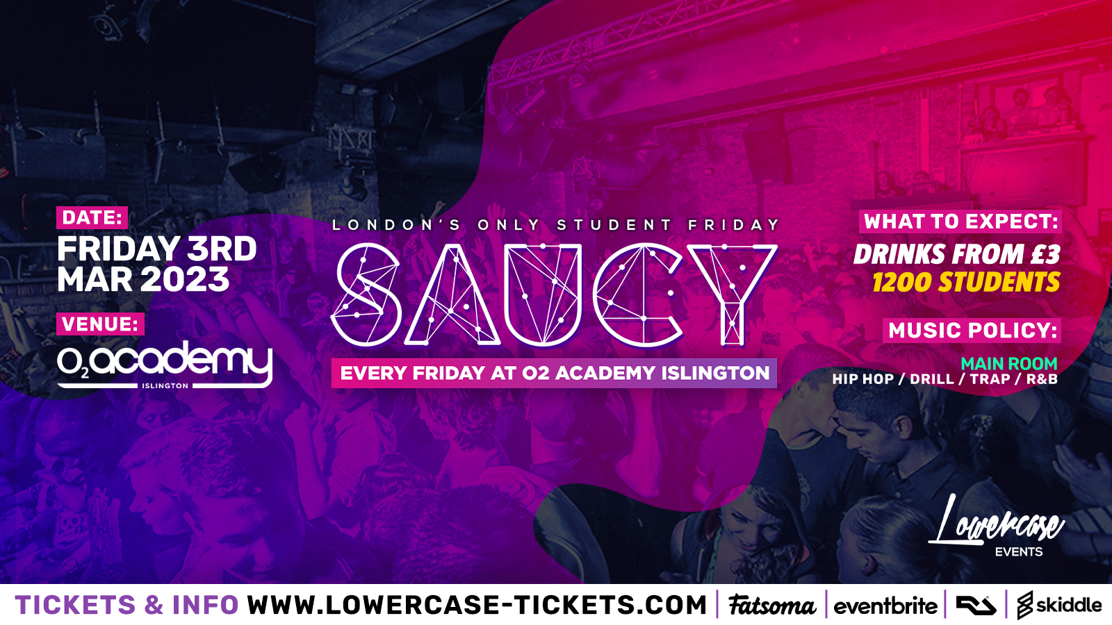 Saucy Fridays 🎉 - London's Biggest Weekly Student Friday @ O2 Academy Islington ft DJ AR